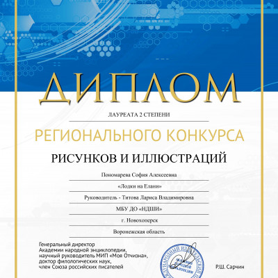 В Региональном конкурсе рисунков и иллюстраций участие приняли юные художницы школы. Сумина Анастасия и Пономарева София воспитанницы класса Титовой Ларисы Владимировны, стали лауреатами 2 степени. От класса Иванниковой Оксаны Владимировны участвовали: Линковская Елизавета, Катунина Анастасия, занявшие 2 место и Жигульская Алина, ставшая лауреатом 1 степени.