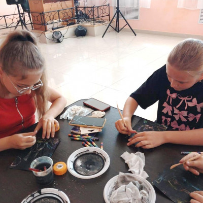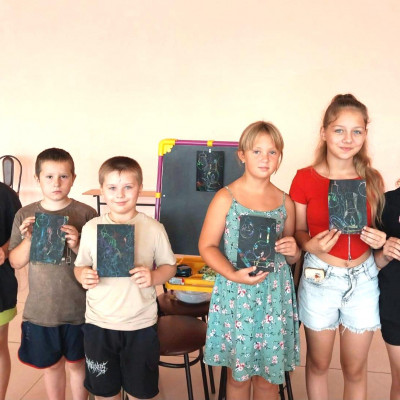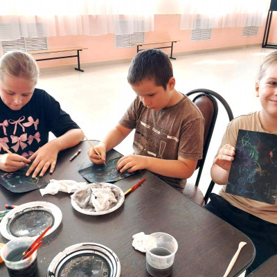 Еще одно занятие прошло сегодня в необычной технике граттаж. Рисунок выполнялся путем процарапывания слоя краски острыми инструментами на цветной или белой основе.