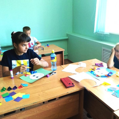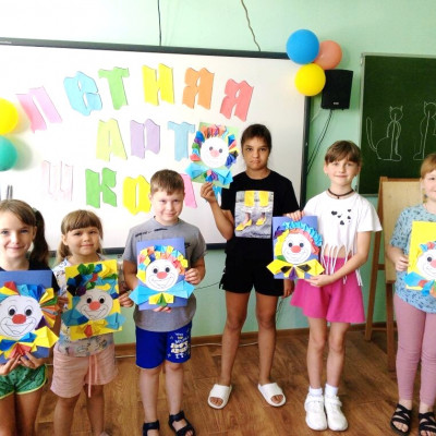 Очередное занятие в Летней Арт-школе поггрузило ребят в мир шуток и смеха. Ребята выполнили композицию из цветной бумаги на тему «Весёлый клоун». Все дети получили массу положительных эмоций и хорошее настроение от веселой совместной работы.