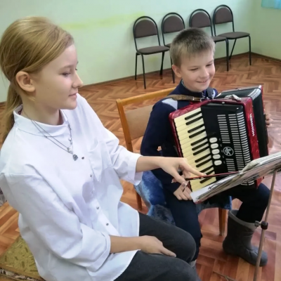 Можно с уверенностью сказать, что преподаватель отделения народных инструментов Любовь Сабутис не зря выбрала своей профессией обучение детей музыкальному искусству. Желание ее воспитанников подражать своему учителю и делать это достойно и грамотно, не забывая о тех педагогических принципах и компетенциях, которые вкладывает их учитель ежедневно в свой труд педагога-музыканта, поддерживается на совместных занятиях. Любовь Ивановна с интересом для себя и своих учеников использует на уроках инструментального исполнительства элементы педагогической практики. Это вдохновляет юных музыкантов, заставляет мыслить и работать с особым усердием, анализировать проблему, искать пути решения, стараться не пропустить в своей работе важного. И самое главное, в технических сложностях и особенностях прочтения музыкального текста не забыть про замысел композитора и образ исполняемого произведения, который в достижении целей всегда должен стоять на первом месте. Именно с таким воодушевлением ведет уроки педагогической практики ученица 5 класса Маргарита Сидрова с учеником 2 класса (по совместительству со своим братом) Николаем Сидровым. Заканчиваются такие уроки совместным ансамблевым исполнением изучаемой пьесы.