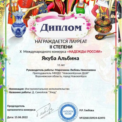 Завершение учебного года для воспитанников народного отделения класса Любови Марочкиной Елань-Коленовского структурного подразделения Новохоперской ДШИ ознаменовалось победой сразу в нескольких конкурсах. Вместе со своим преподавателем Егор Чернышов и Альбина Якуба отправили видеозаписи своих выступлений на оценку жюри, и это оказалось отличным подведением итогов за учебный год!