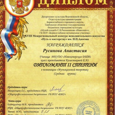 - Русинова Анастасия (руководитель Елена Колесникова) - дипломант 2 степени.
