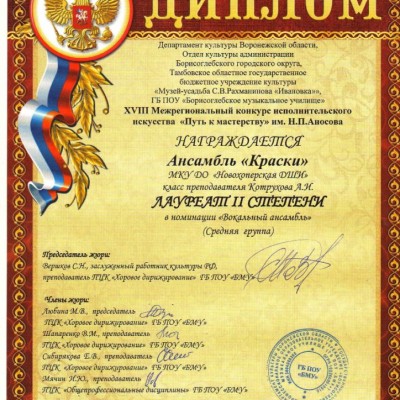 - Вокальный ансамбль «Краски» (руководитель Андрей Котрухов) - лауреат 2 степени;
