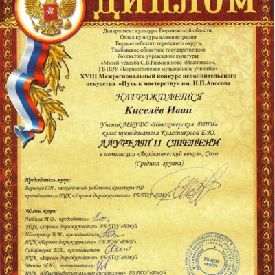 - Киселев Иван (руководитель Елена Колесникова) - лауреат 2 степени;