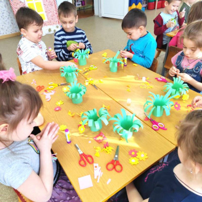 На мастер-классе малыши делились друг с другом интересными историями и придумывали слова поздравлений для близких на 8 Марта. Своими неповторимыми букетами ребята поздравили своих мам и бабушек.