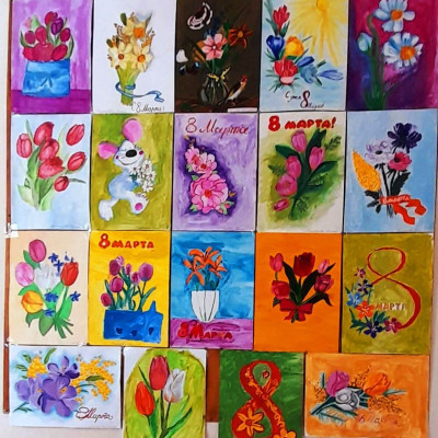 В фойе МКУ КСК «Кристалл» учащиеся отделения «Живопись» (преп. Лариса Титова) оформили выставку рисунков, посвященных празднику 8 Марта.