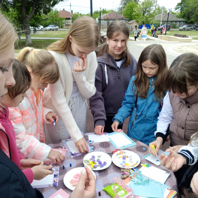Преподаватели отделения «Живопись» провели ряд мастер-классов: по художественной росписи посуды - Елена Гусейнова, в технике граттаж работала Оксана Иванникова, оригинальное оформление фоторамок показала Екатерина Шульга. Творческие занятия привлекли большое количество гостей, все желающие с удовольствием попробовали свои силы в декоративном творчестве, оставив выполненные работы себе на память.