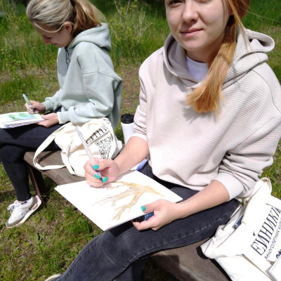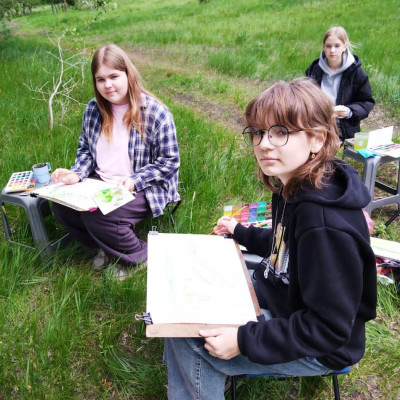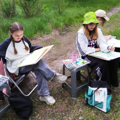 В пленэре участвовали обучающиеся классов преподавателей Е.В.Гусейновой и Е.А.Трушечкиной: Ефимова Софья, Кусаева Виктория, Помазуева Анна, Золотарева Ксения, Бурова Ольга, Мельникова Марина, Короткова Анна, Любушкина Софья. Уникальная природа заповедника, удивительные живописные пейзажи, интересная флора и фауна - вся неповторимая атмосфера заповедника дала нам большие возможности для творчества. Кроме воспитанников школы искусств в пленэре приняли участие гости из Воронежа, сотрудники Дирекции особо охраняемых природных территорий Воронежской области Анастасия Скуридина (дизайнер) и Анна Москвина (специалист по экологическому просвещению), в результате чего они зарядились общим приподнятым творческим настроением и попробовали свои силы в пейзажной лирике.