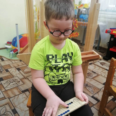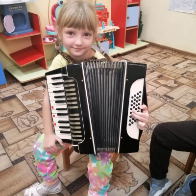 На одном из занятий Любови Ивановны Миша Ватолин и Ариша Запорожец продолжили первое знакомство с аккордеоном: научились находить кнопочку «до», вести мех, составлять ритмические рисунки, распознавая короткие и длинные звуки.