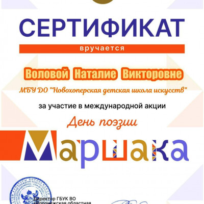 Сотрудники Новохоперской детской школы искусств с большим удовольствием приняли участие в XIII Международной акции «День поэзии С.Я.Маршака», ежегодно организуемой Воронежской областной детской библиотекой.