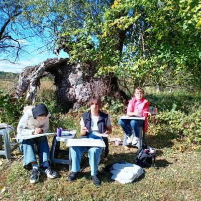 В пленэре участвовали обучающиеся классов преподавателей Е.В.Гусейновой и Е.А.Трушечкиной: Золотарева Ксения, Помазуева Анна, Боярищева Мария, Любушкина Софья, Дикарева Софья, Савлук Мария, Щербакова Екатерина, Холомкина Татьяна, Бурова Ольга, Мякотина Софья, Ефимова Софья, Кусаева Виктория, Катина Мария, Антипова Мария, Мельникова Марина. Живописные пейзажи и удивительная атмосфера заповедника подарили большие возможности для творчества. При работе на пленэре у ребят проявляется умение видеть в окружающей жизни интересное, находить красоту природы, а также умение донести до зрителей ее эмоционально-образное содержание.